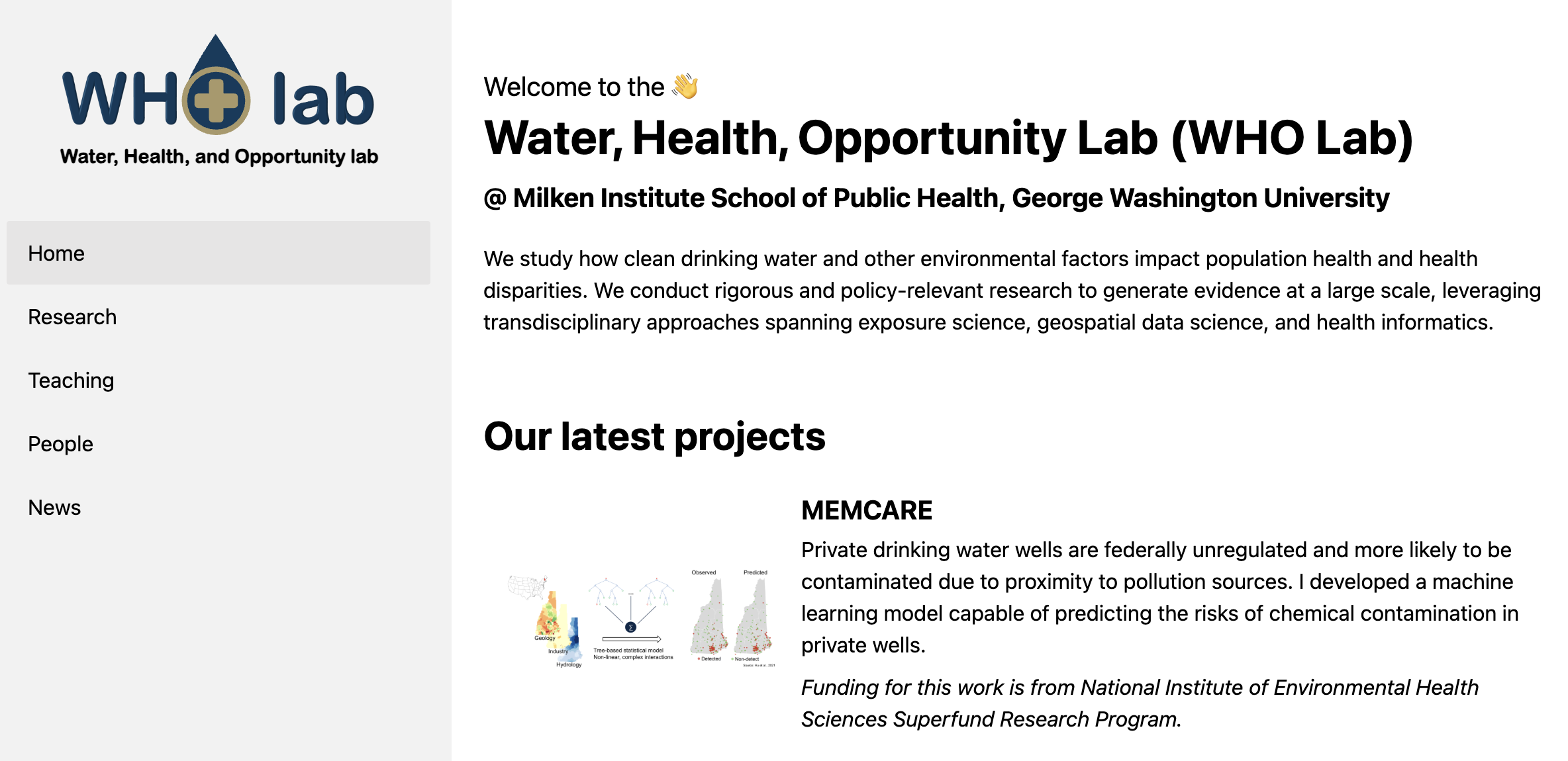 Environmental Data Science, Drinking Water Quality, Health Equity, Climate Change, Geospatial Analysis, Machine Learning