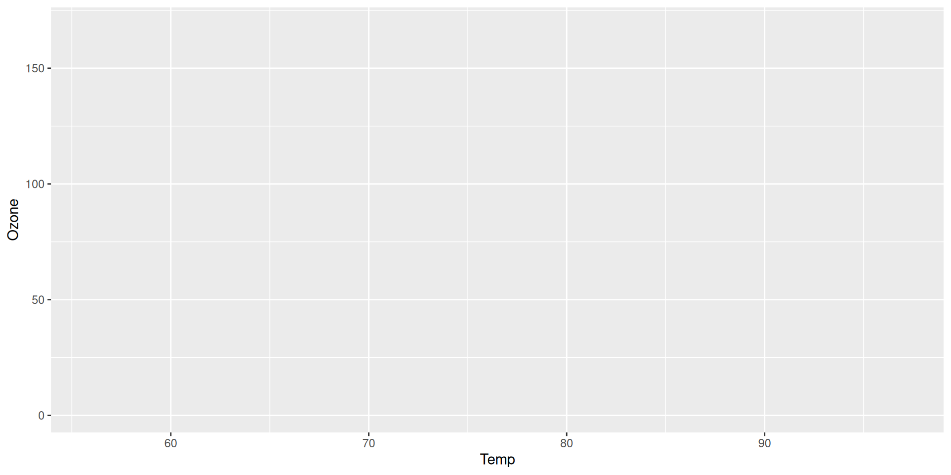 Initialize the plot using ggplot(). It is empty because we haven’t told ggplot how to map the data to the plot yet.