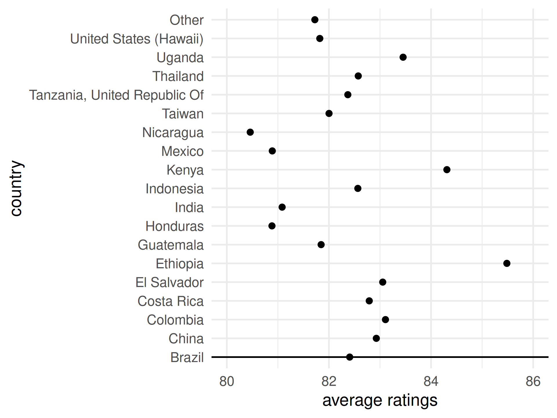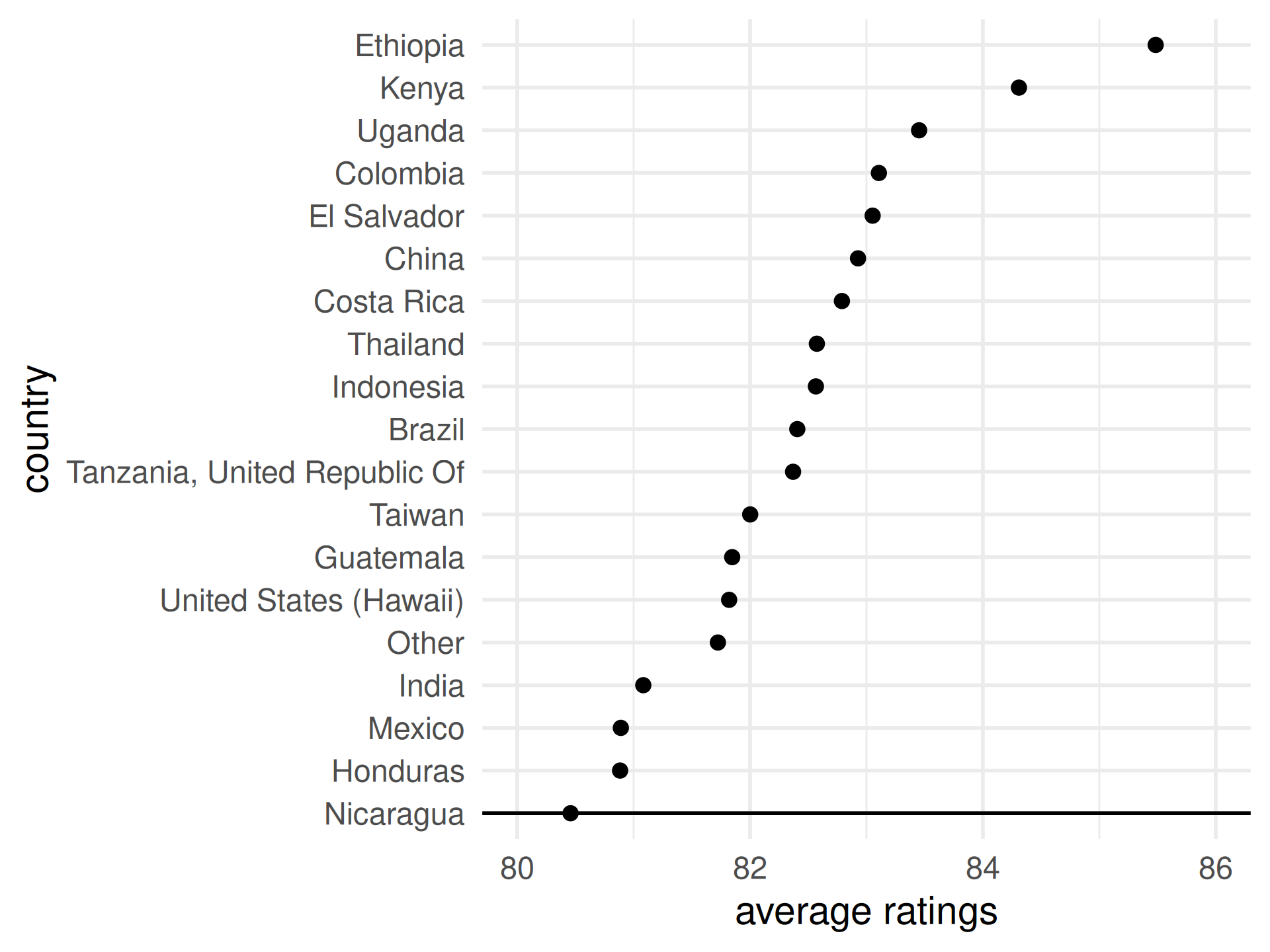 $ country_of_origin <chr> "Ethiopia", "Ethiopia", "Guatemala", "Ethiopia",…
