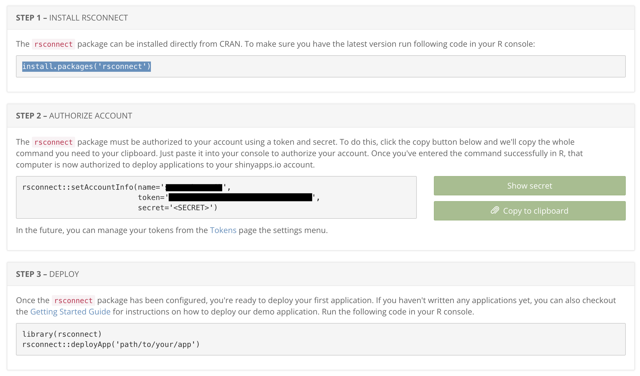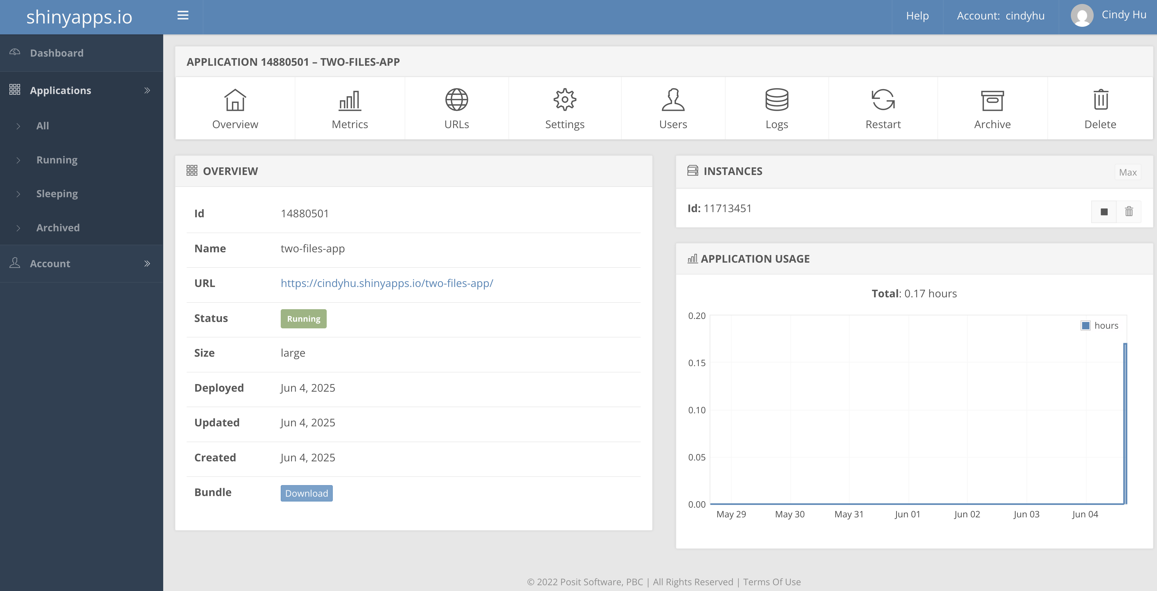 ui.R and server.R files in the same directoryglobal.R.shinyapps.io?shinyapps.iorsconnect package in R: install.packages("rsconnect")shinyapps.iohttps://{your-username}.shinyapps.io/{your-app-directory-name}rsconnect/ folder within your app directory, which contains the deployment information. This should be added and committed into version control (i.e. push it to GitHub)shinyapps.io dashboardDashboard provides an overview of your deployed apps, including: app name and URL, deployment status, usage statistics (e.g., number of active users, CPU usage)