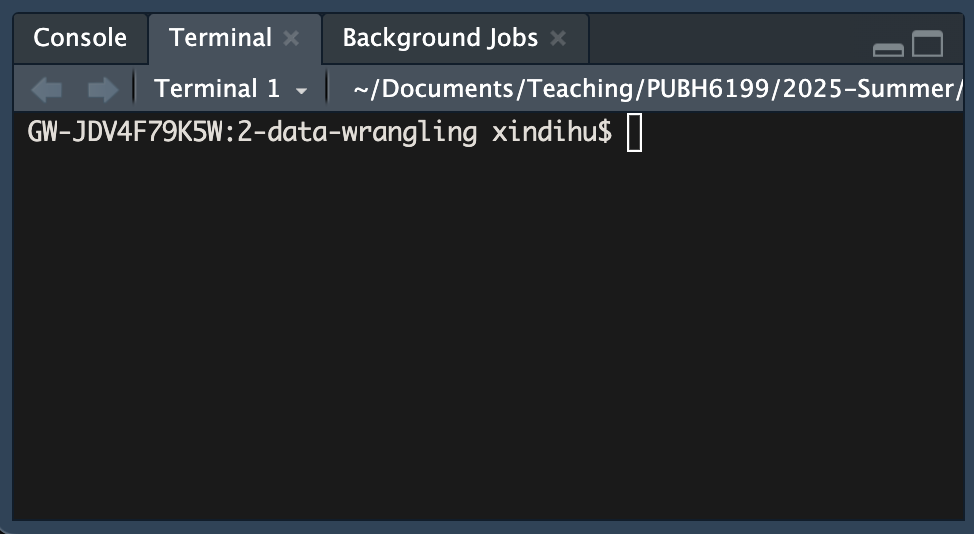 If you cannot find the Terminal tab, you can also open a terminal window by clicking on the Tools menu and selecting Terminal > New Terminal. If that doesn’t work, check if your RStudio is out of date. Click Help, About RStudio to check the current version.
