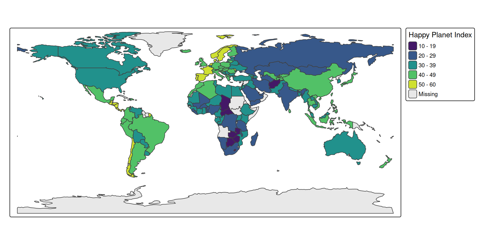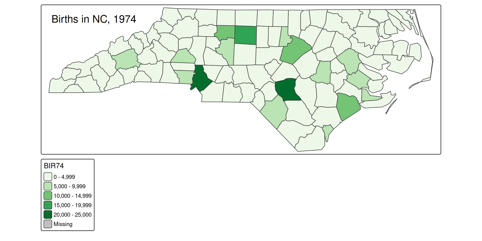 tm_fill(): shaded areas for (multi)polygonstm_borders(): border outlines for (multi)polygonstm_polygons(): both, shaded areas and border outlines for (multi)polygonstm_lines(): lines for (multi)linestringstm_symbols(): symbols for (multi)points, (multi)linestrings, and (multi)polygonstm_raster(): colored cells of raster data (there is also tm_rgb() for rasters with three layers)tm_text(): text information for (multi)points, (multi)linestrings, and (multi)polygons{tmap}tm_polygons(): for choropleth mapstm_symbols(): for point data, size and color can represent different variablesScales control how the values are represented on the map and in the legend, and can have a major impact on how spatial variability is portrayed