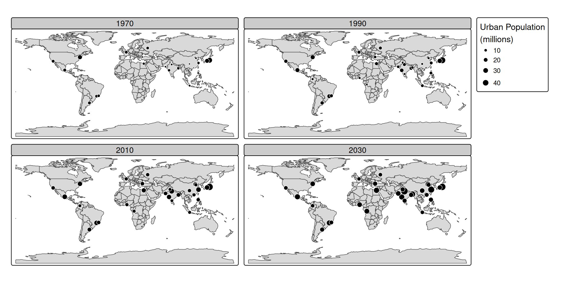 urb_1970_2030 <- urban_agglomerations |> filter(year %in% c(1970, 1990, 2010, 2030))